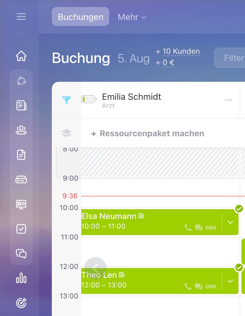 Bei dieser Buchungsart wird eine zeitliche Ressource reserviert – beispielsweise ein Termin bei einem Mitarbeiter, ein Gerät oder ein Raum.