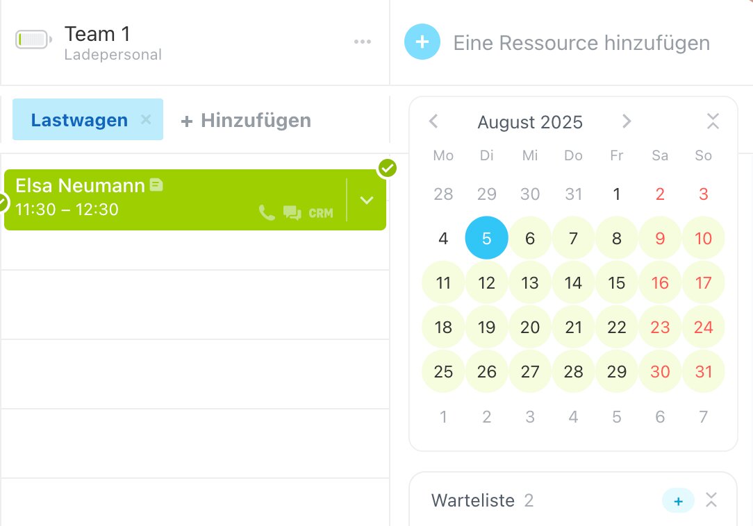 - Mitarbeiter + Transportmittel: Sie reservieren einen Servicetechniker mit Firmenwagen für Kundentermine vor Ort.