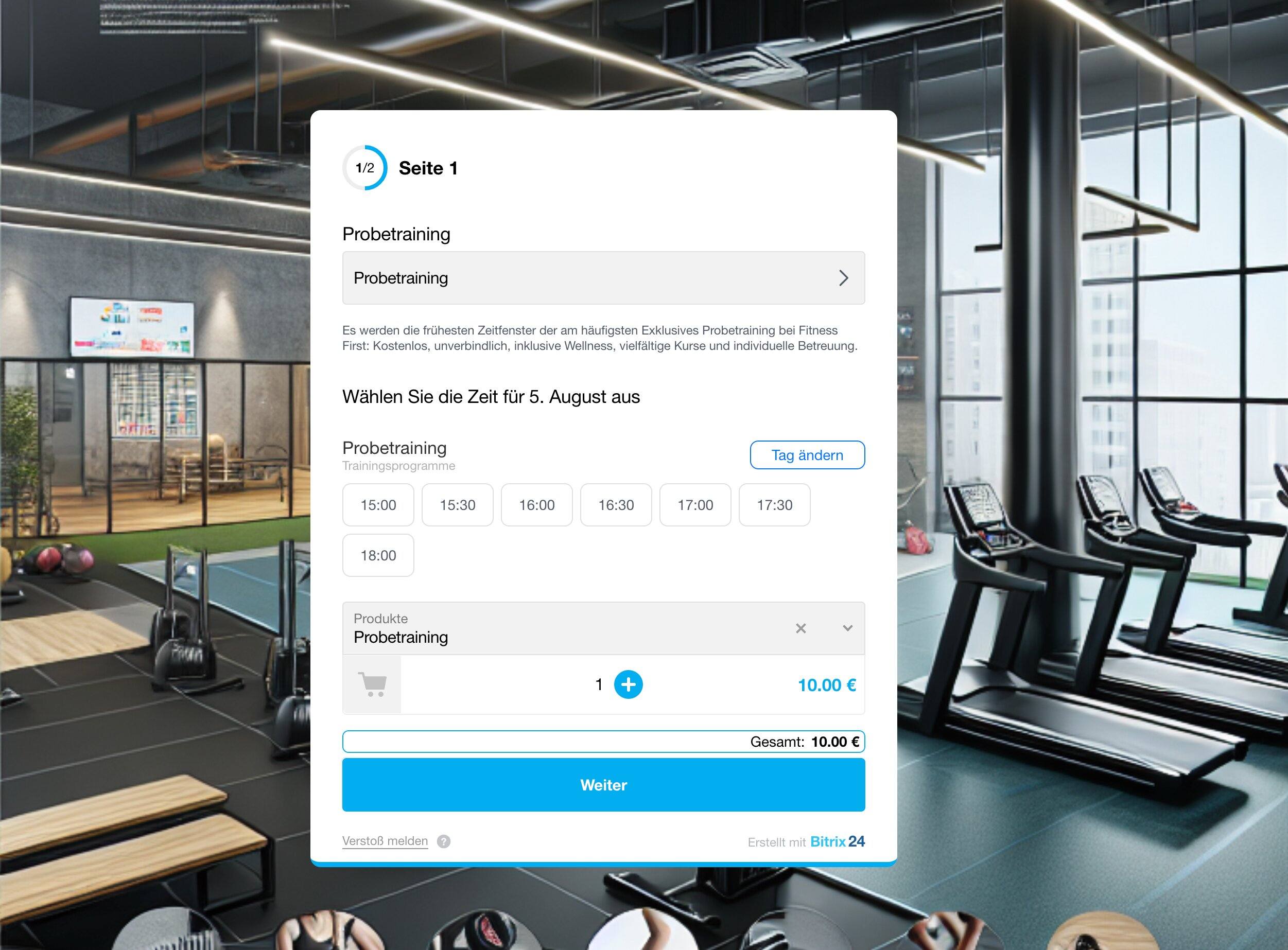 Um ein Buchungsformular für ein Probetraining inklusive Zahlung einzurichten, führen Sie folgende Schritte aus: