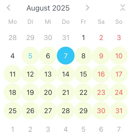 So können Nutzer schnell erkennen, welche Tage für Buchungen verfügbar sind und welche bereits besetzt sind.