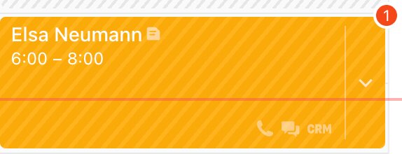 Neue Buchungen sind in blau dargestellt. Die zugehörigen Aktivitäten in Aufträgen sind ebenfalls auf dem blauen Hintergrund angezeigt. Falls der Kunde die Buchung nicht bestätigt, erscheint ein roter Zähler bei der Aktivität, der den Mitarbeiter darauf hinweist, den Kunden zu kontaktieren.