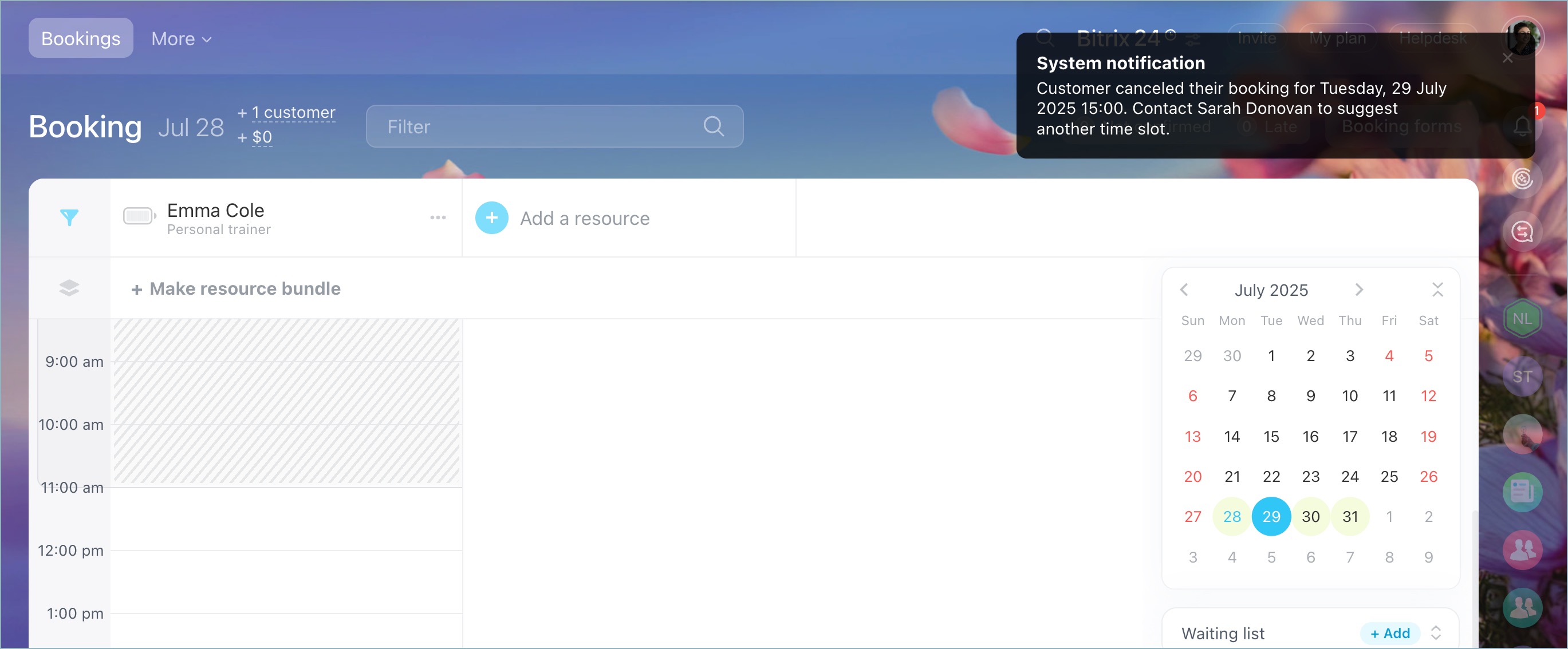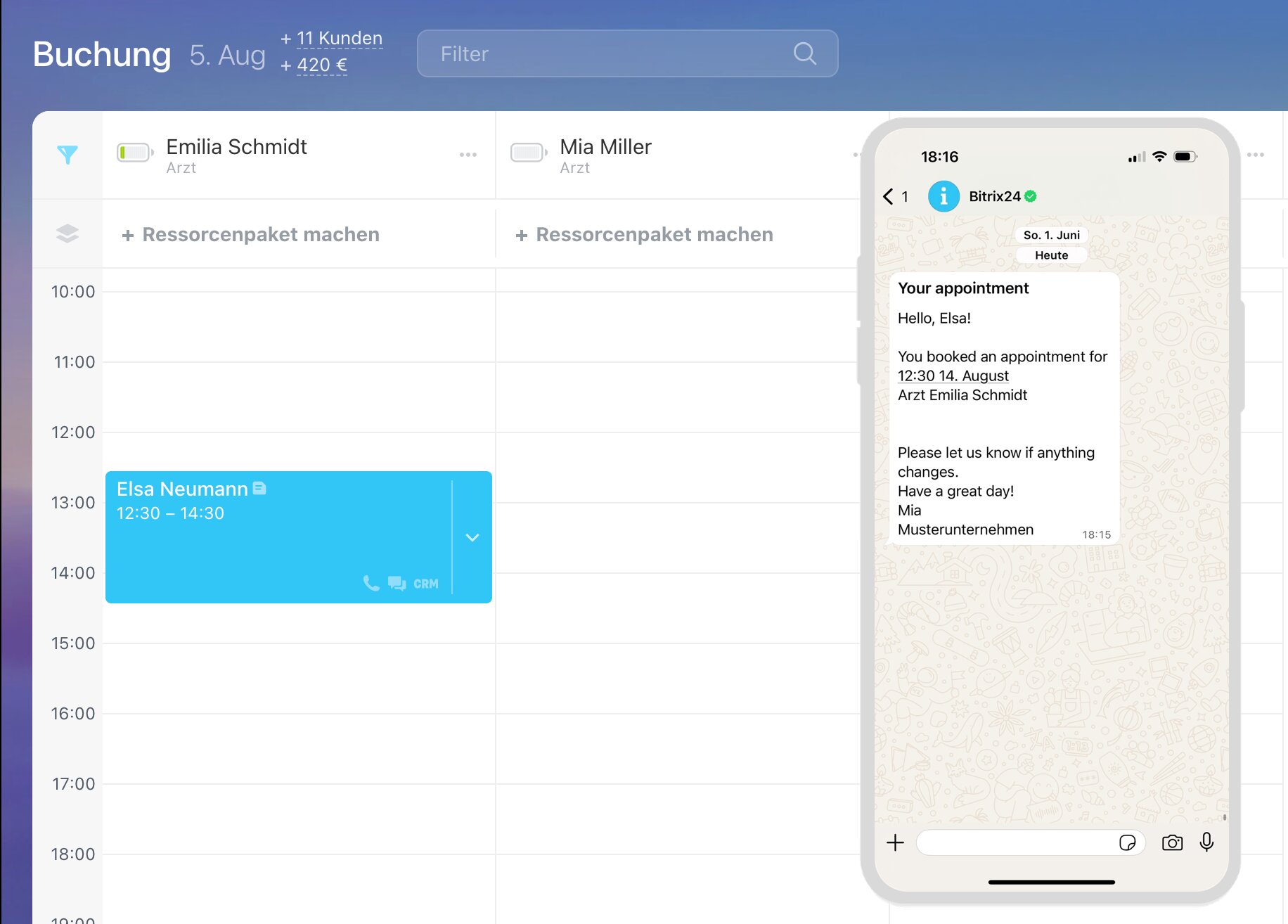 Unabhängig davon, wie sie buchen, sendet Bitrix24 automatisch Erinnerungen, um sicherzustellen, dass der Termin nicht vergessen wird und um das Risiko von Nichterscheinungen zu verringern.