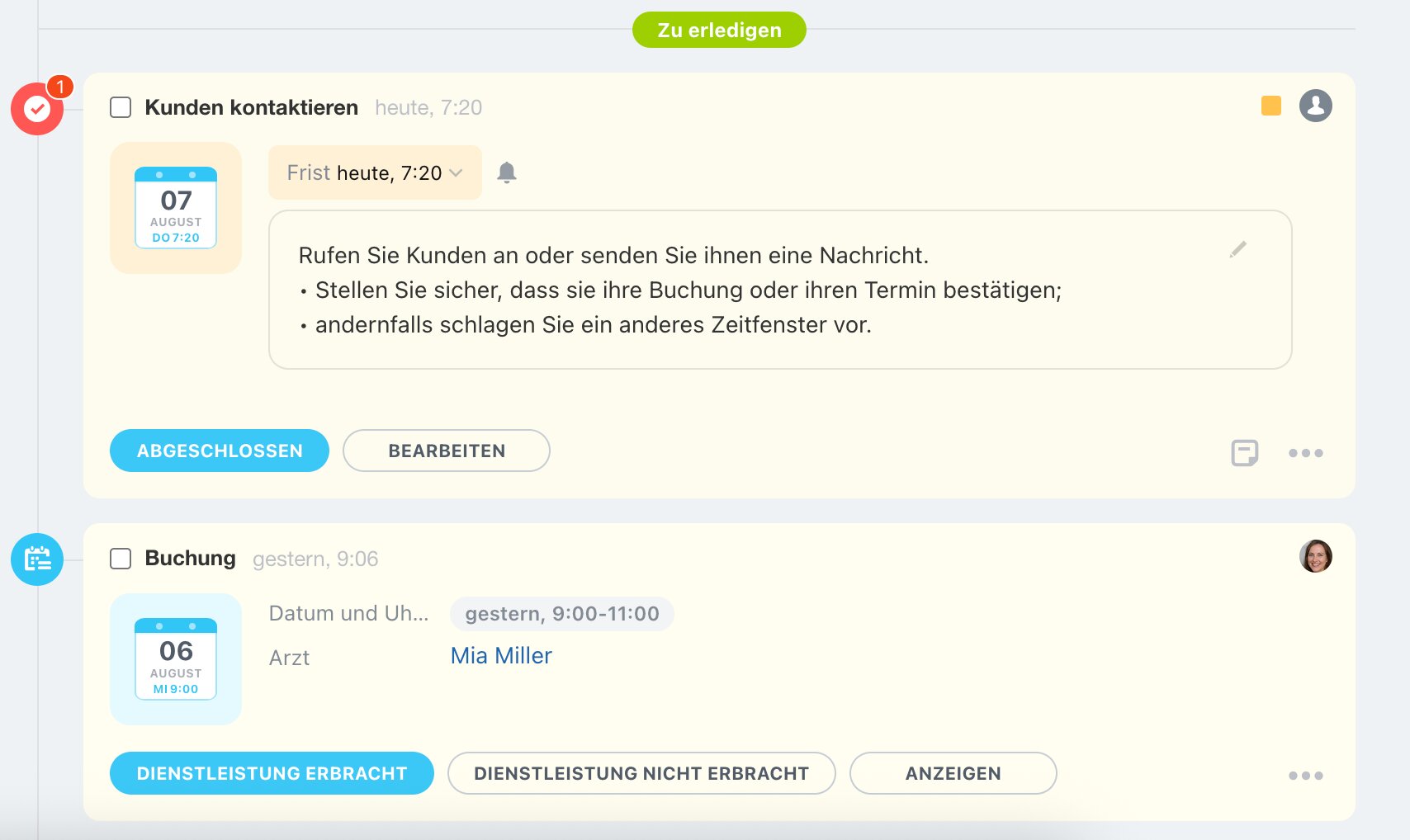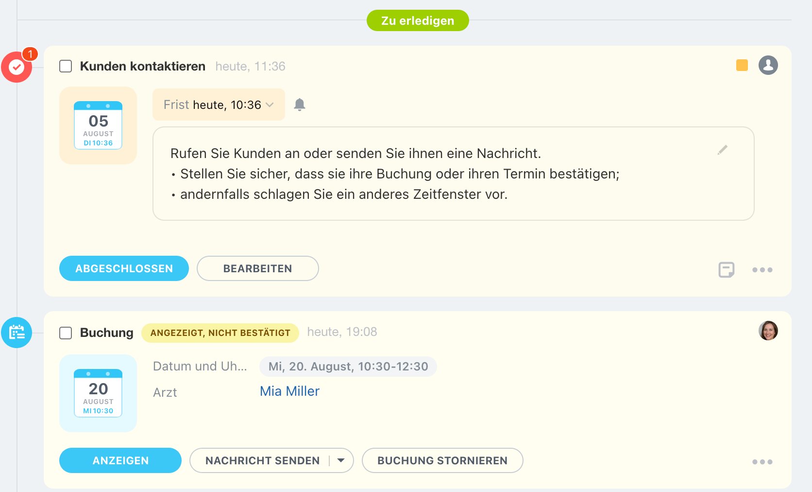 Wenn die Buchung immer noch nicht bestätigt wird, erstellt Ihr CRM eine Aktivität, um den Mitarbeiter daran zu erinnern, sich bei dem Kunden zu melden.