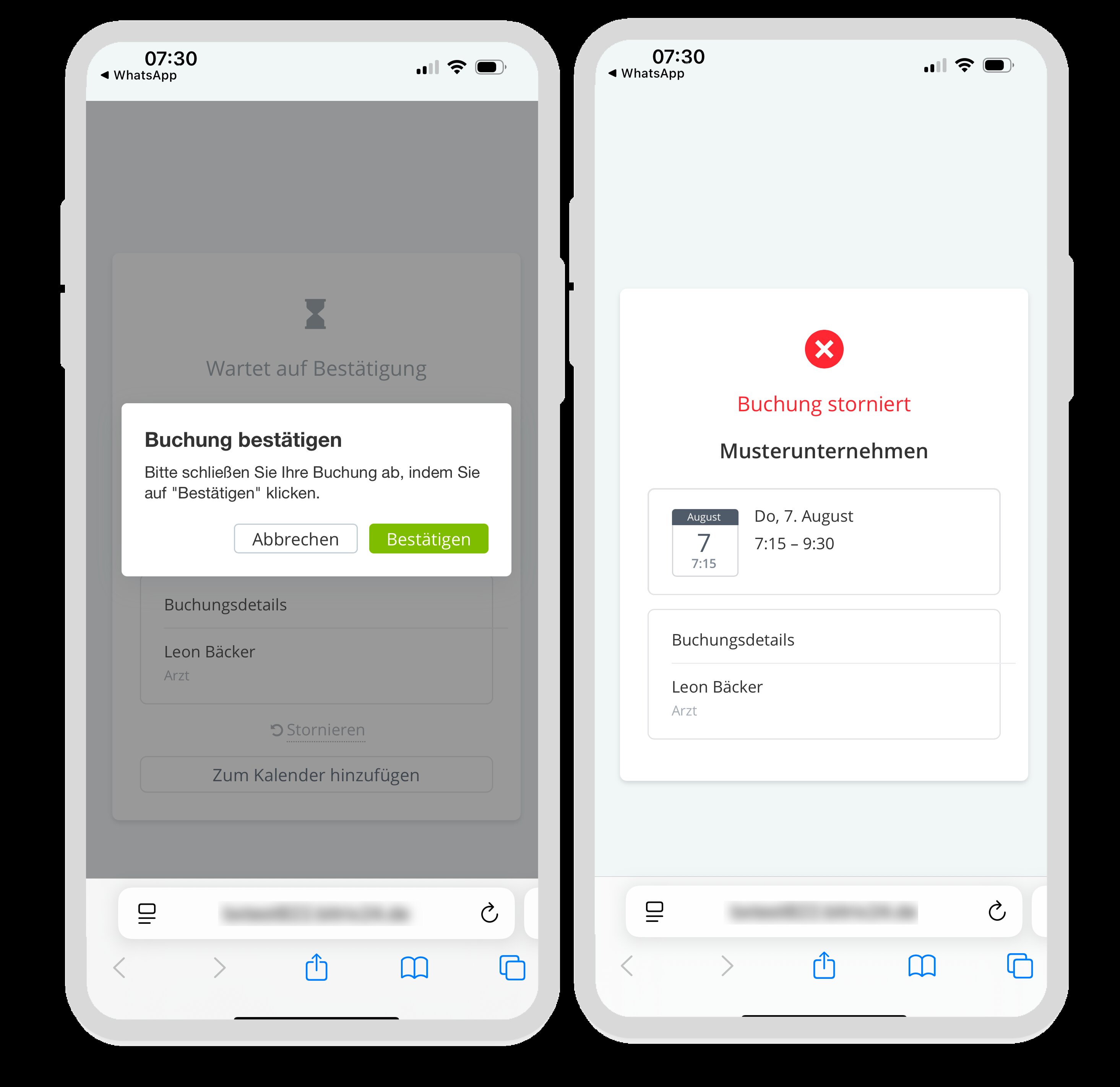 Wenn der Kunde die Buchung nicht bestätigt, wird das Zeitfenster automatisch für eine andere Buchung freigegeben.