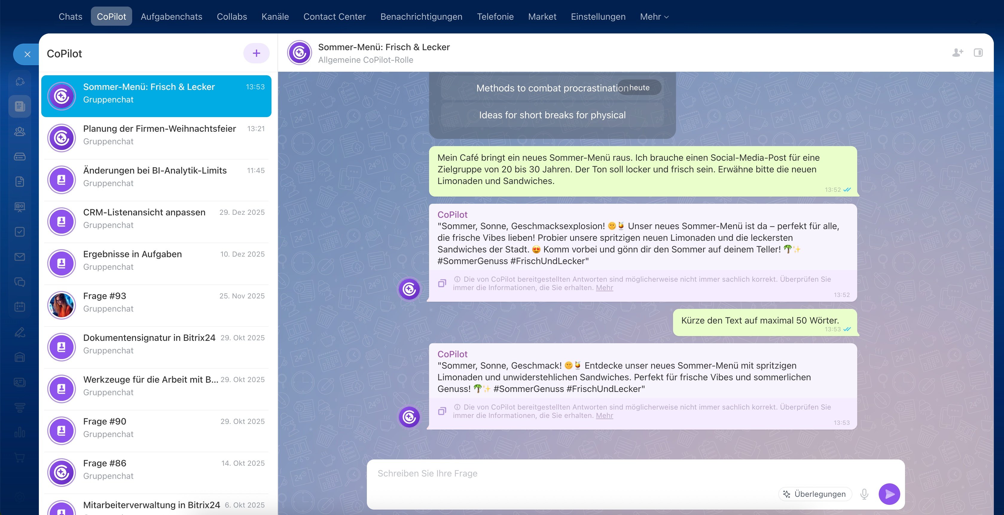 Verfassen Sie überzeugende Stellenanzeigen, gestalten Sie virale Social-Media-Beiträge oder entwerfen Sie eine Marketingkampagne – alles direkt im Chat mit CoPilot, Ihrem persönlichen Experten für jedes Thema.