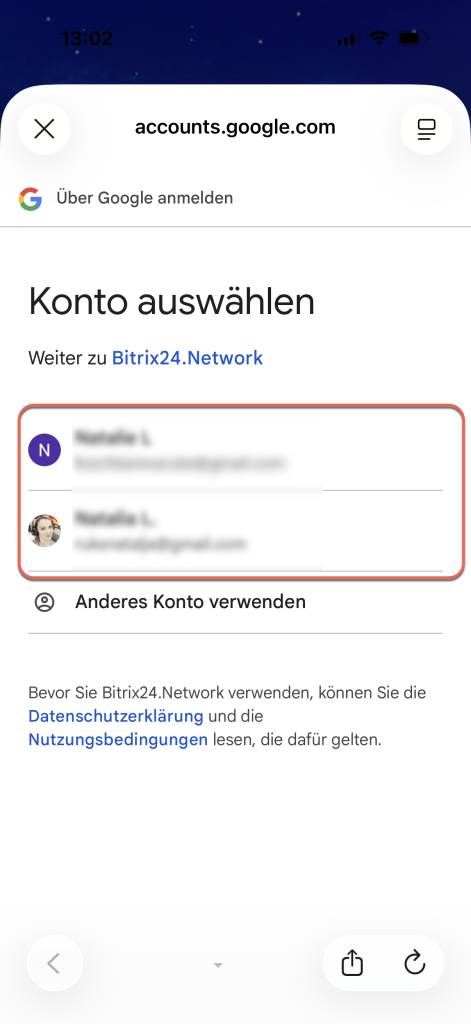 Wenn Sie bereits in der Google-App angemeldet sind, wählen Sie das gewünschte Konto aus, falls Sie mehrere haben. Klicken Sie auf Weiter.