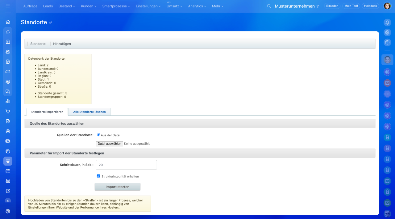 Sie können Standorte importieren oder manuell hinzufügen. Wir empfehlen Ihnen, die integrierte Import-Funktion zu nutzen.