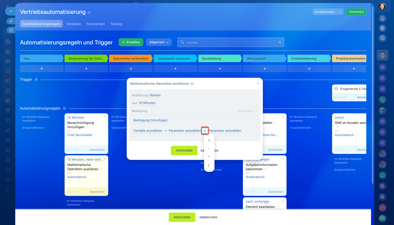 Wir haben 2 neue Automatisierungsregeln hinzugefügt: Variable Ändern und Mathematische Operationen. Diese Regeln helfen Ihnen, die Arbeit mit Variablen und Konstanten zu automatisieren.