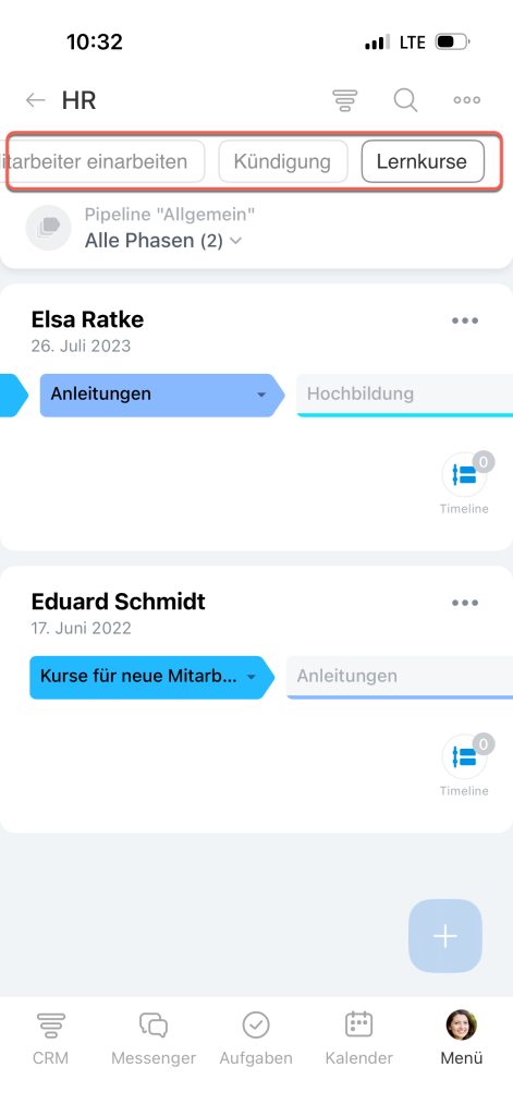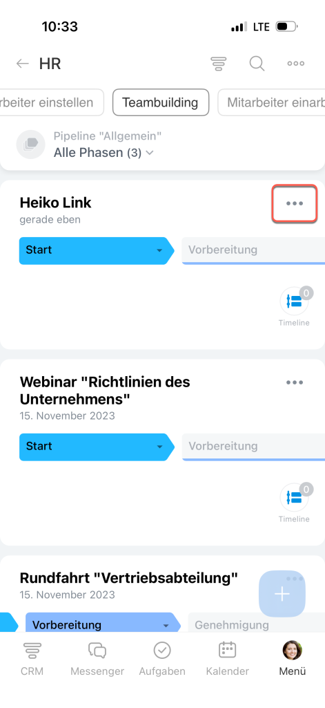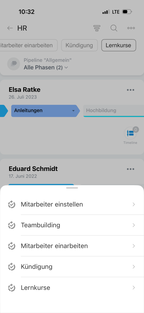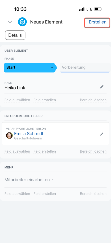 - Die Elemente eines Smartprozesse können Sie sowohl in der Webversion als auch in der mobilen Anwendung hinzufügen.