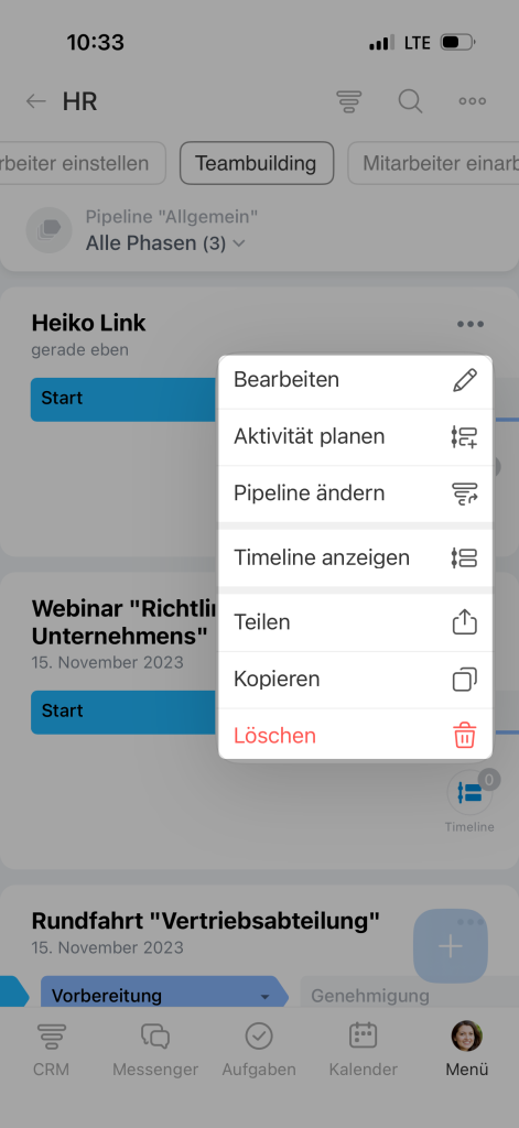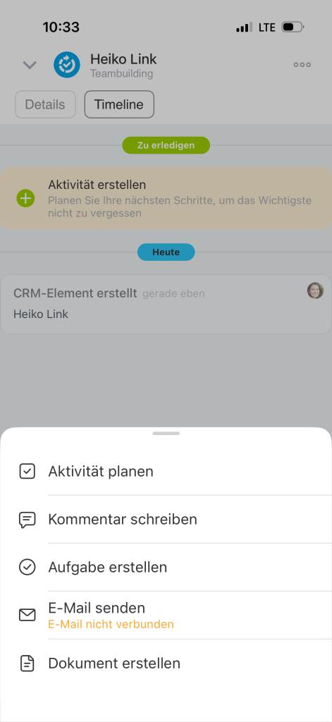 Füllen Sie das Formular aus und klicken Sie auf Erstellen. Jetzt können Sie Aktivitäten planen, Aufgaben erstellen oder Dokumente vorbereiten, je nachdem Ihr Arbeitsprozess organisiert ist.