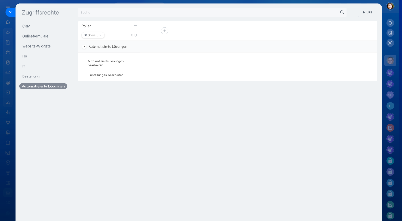 Der Zugriff auf Smartprozesse, die mit der automatisierten Lösung verbunden sind, wird in den CRM-Zugriffsrechten konfiguriert.