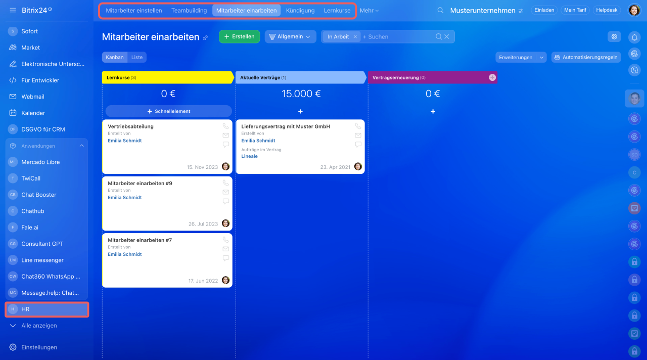 Die automatisierte Lösung für die Personalabteilung kann zum Beispiel Prozesse für Einstellung, Einarbeitung, Schulung und Kündigung von Mitarbeitern automatisieren.