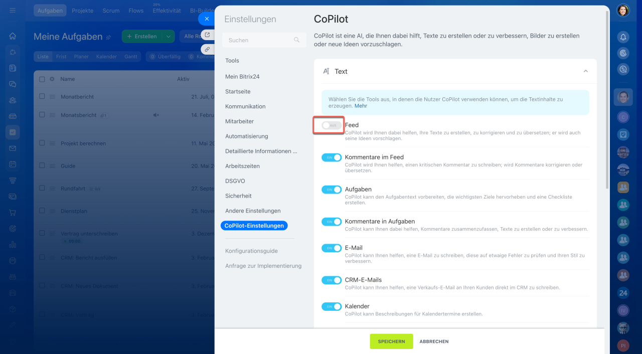 Kann CoPilot in Bitrix24 deaktiviert werden?