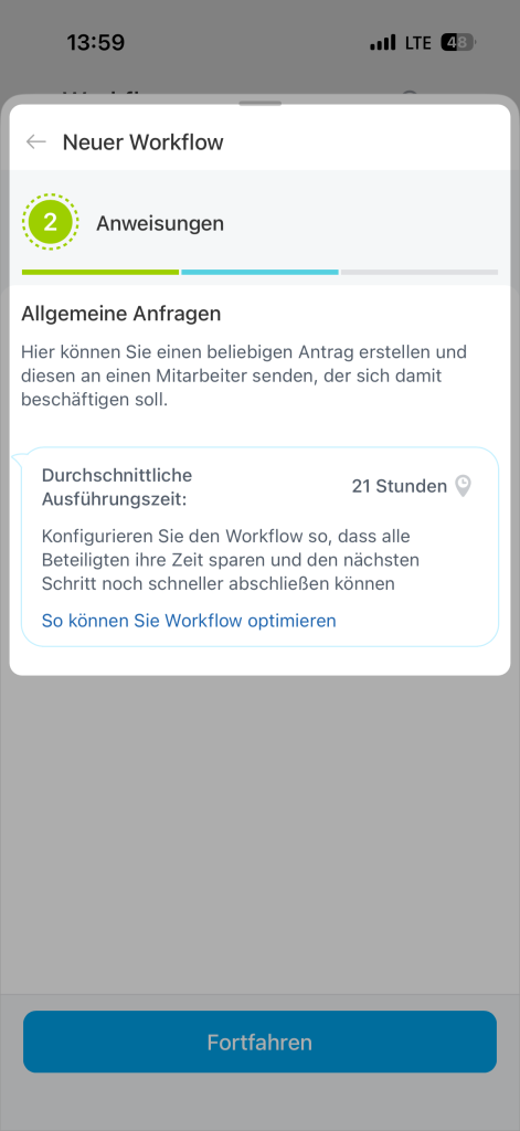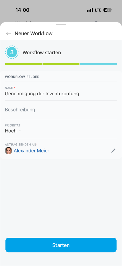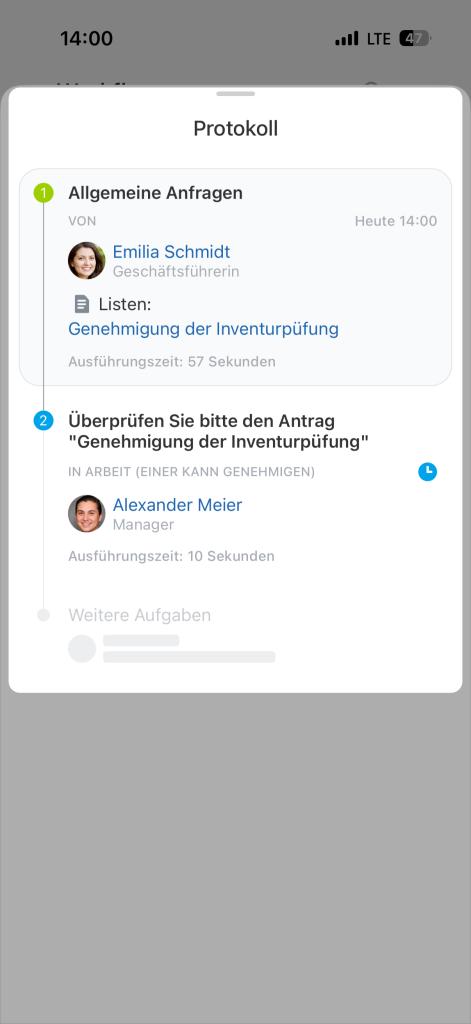 - Workflows sind in der mobilen Anwendung verfügbar.
