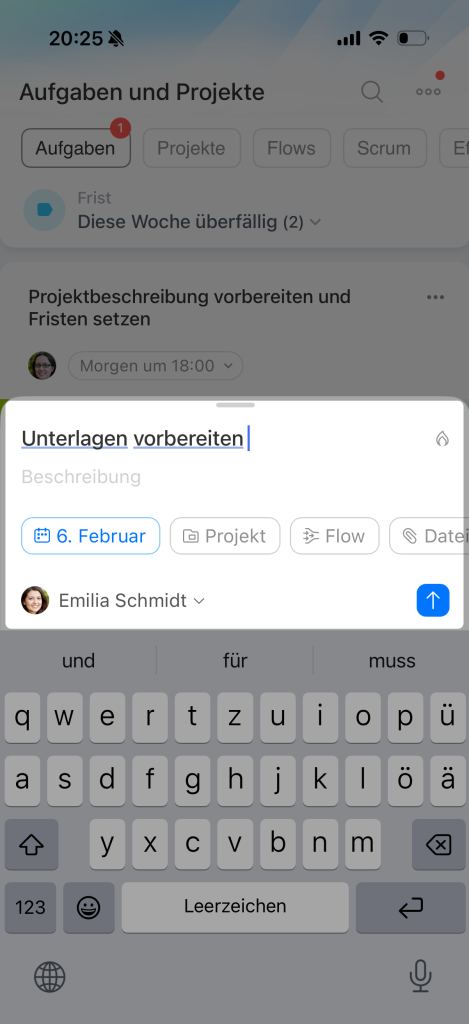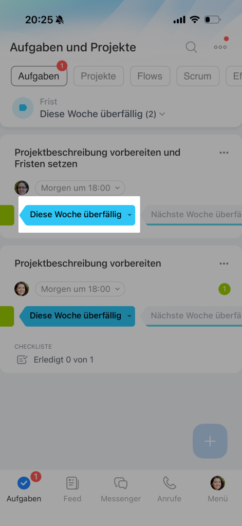 Wenn Sie die Aufgabe in eine andere Phase übertragen, wird ihre Frist automatisch geändert.