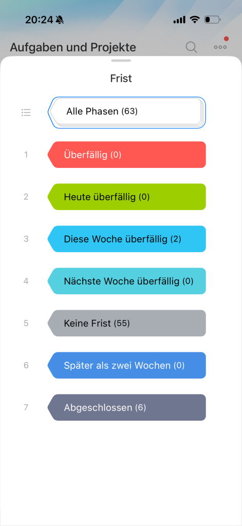 Phasen in der Ansicht "Frist"