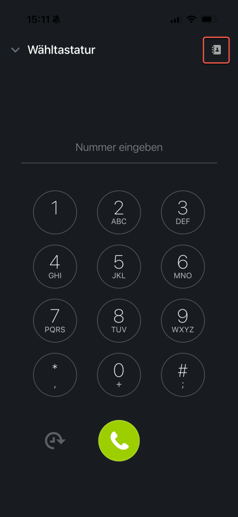 Wahltastatur: Die Option ist nützlich, wenn Sie einen Kunden oder Partner telefonisch erreichen möchten. Tippen Sie auf das Symbol