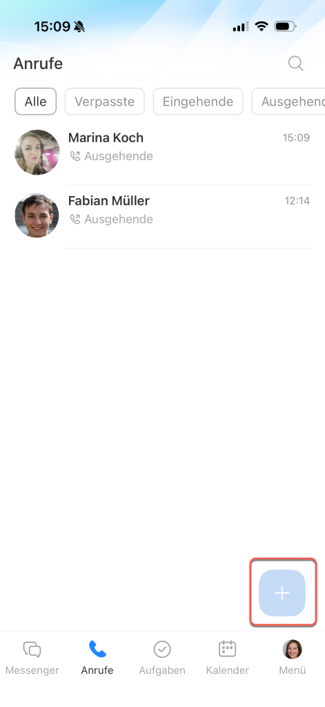 - Der Anruf kann aus jeder Aufgabe, jedem Termin oder Chat gestartet werden.
