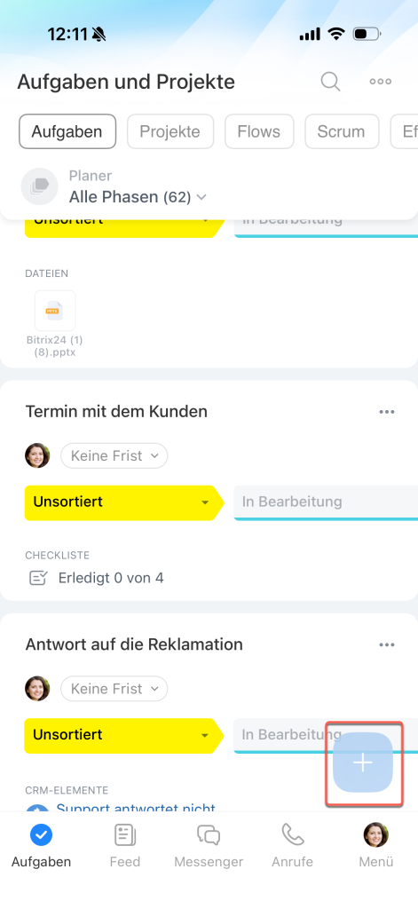Erstellen und arbeiten Sie mit den Bitrix24-Aufgaben bequem in der mobilen Anwendung.