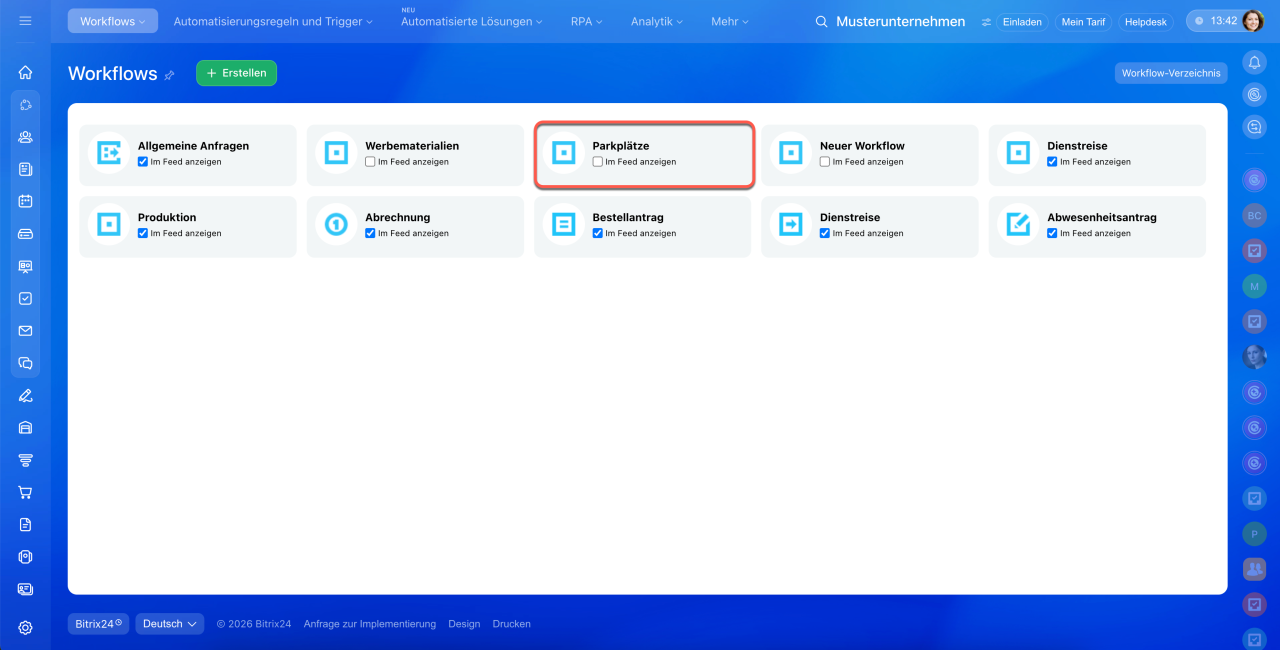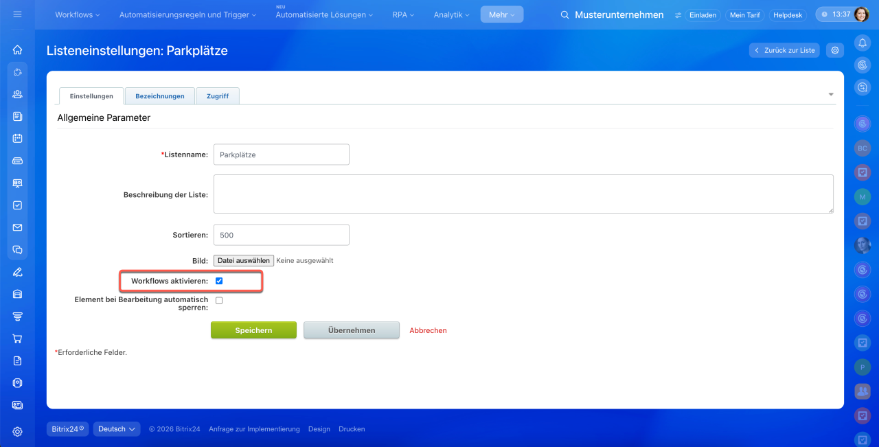 - Aktivieren Sie in den Einstellungen die Option Workflows aktivieren und speichern Sie die Einstellungen.