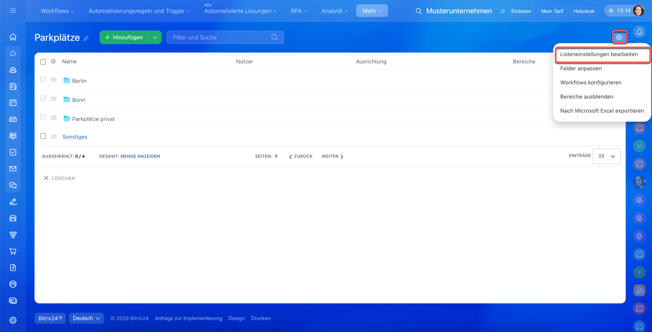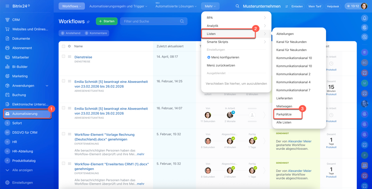 Öffnen Sie den Bereich Automatisierung > Liste und wählen Sie die gewünschte Liste aus.