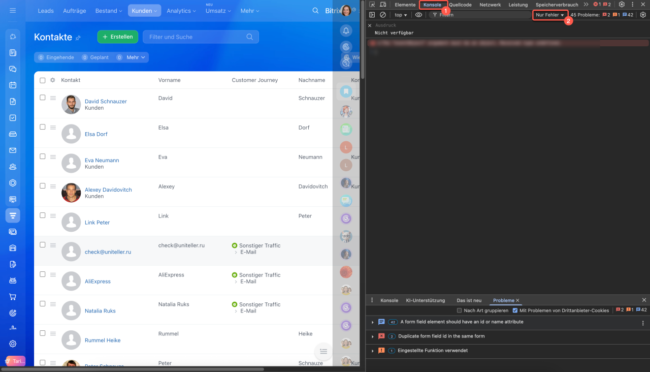 https:/yourcompany.bitrix24.de/crm/deal/category/0/. - Welche Mitarbeiter haben den Fehler: alle oder nur einige.