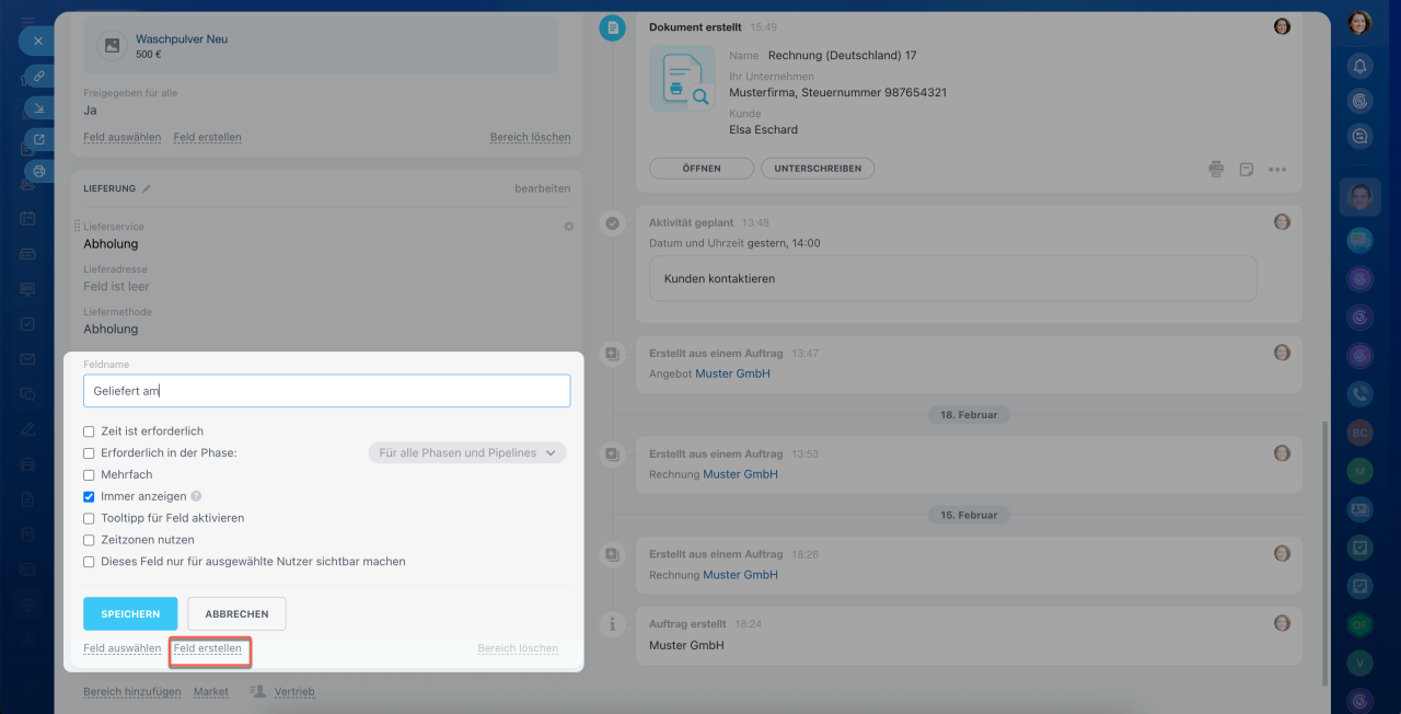Benutzerdefinierte Felder für CRM-Elemente
