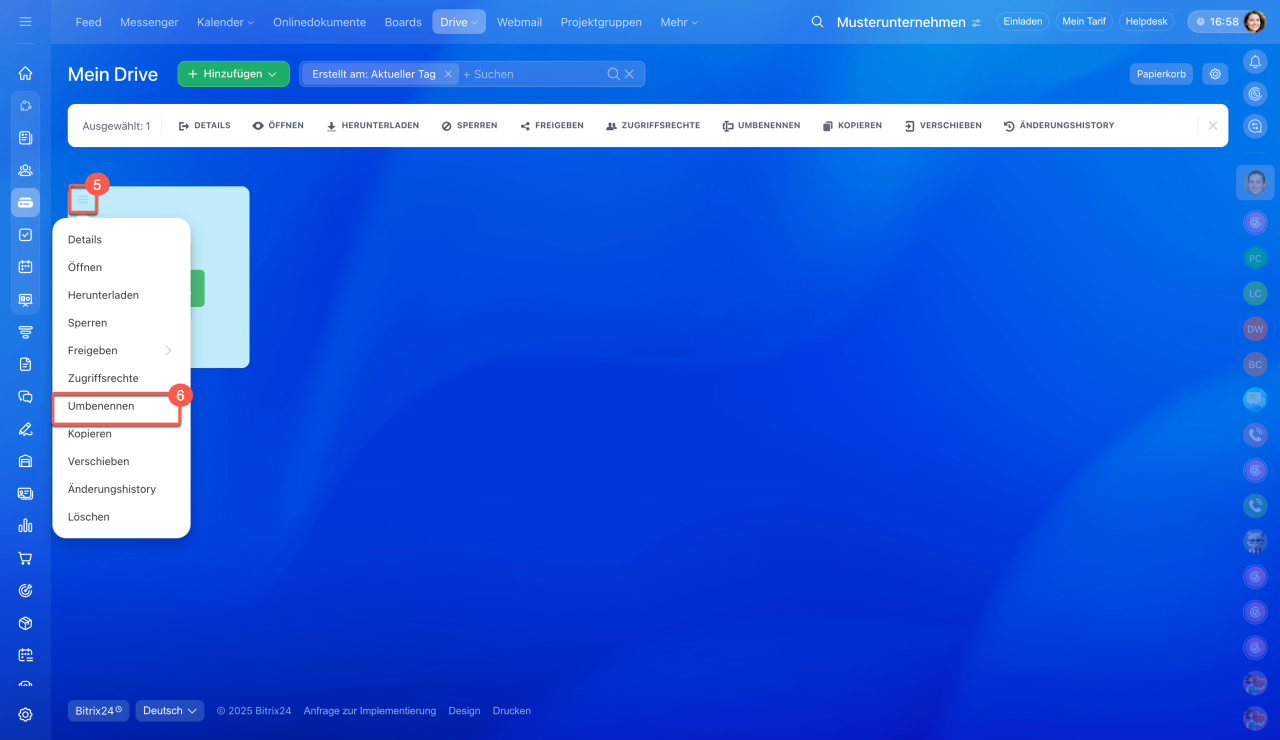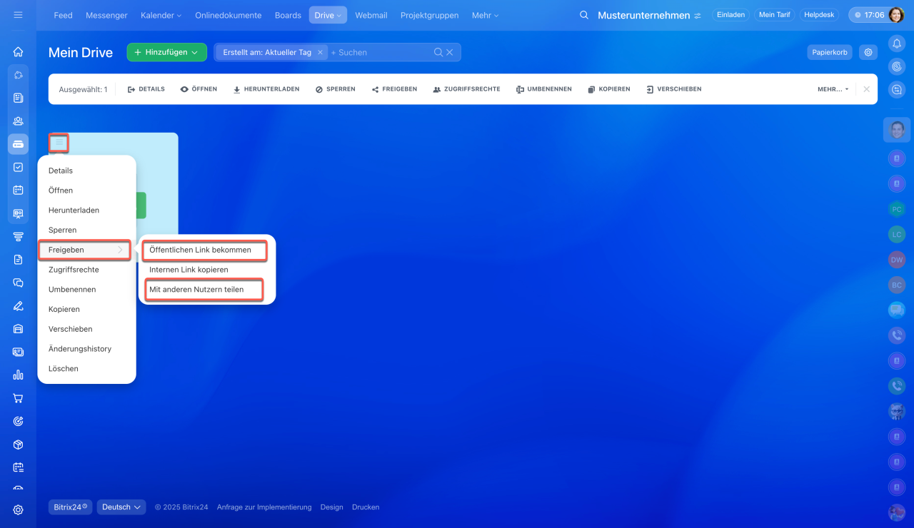 - Öffentlichen Link bekommen — für externe Nutzer: Kunden, Auftragnehmer und andere.