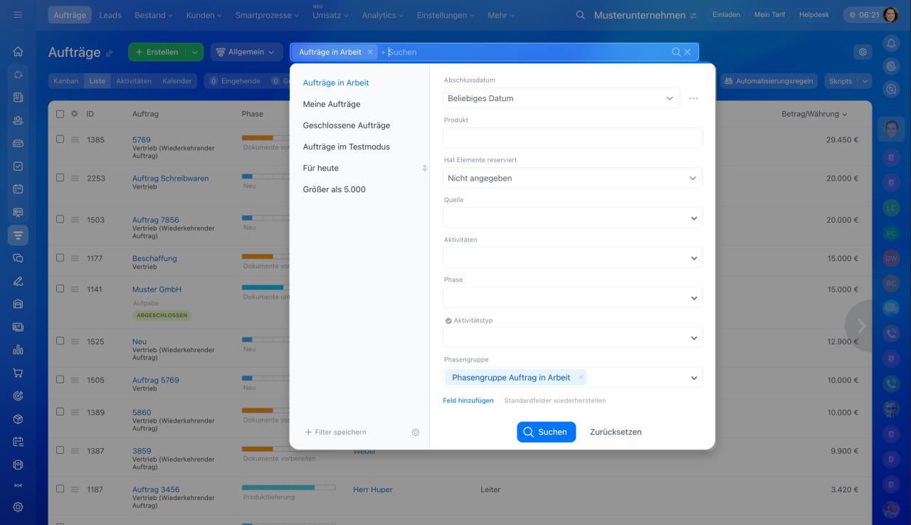Filter und Suche im CRM