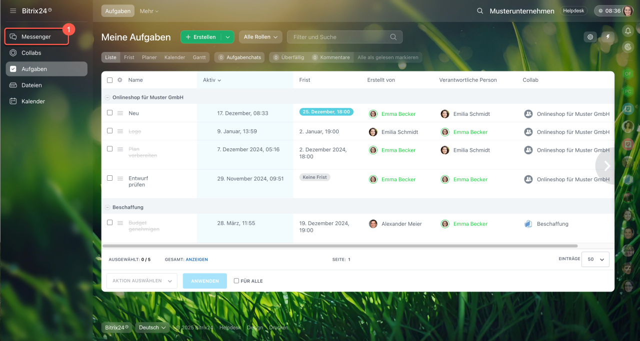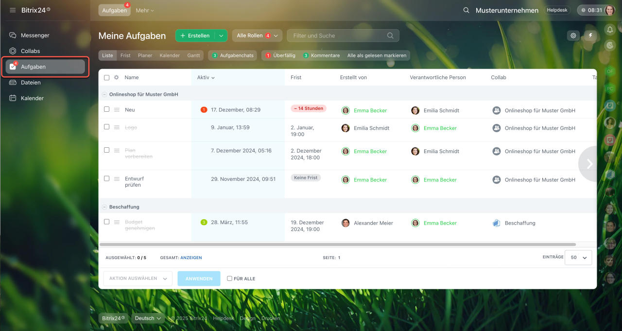 - Mit Aufgaben im Collab können sowohl Mitarbeiter als auch eingeladene Gäste arbeiten.