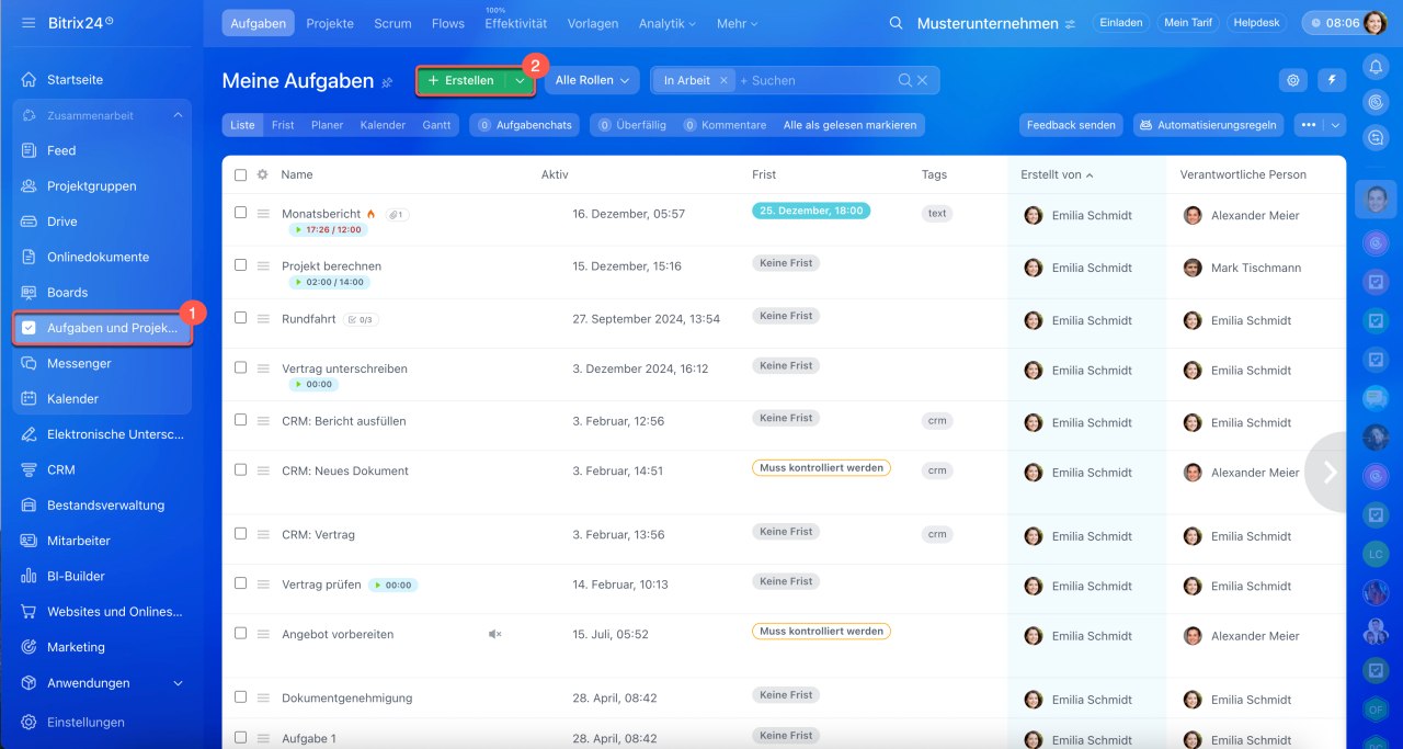 Fristansicht: Arbeit mit Aufgabenfristen