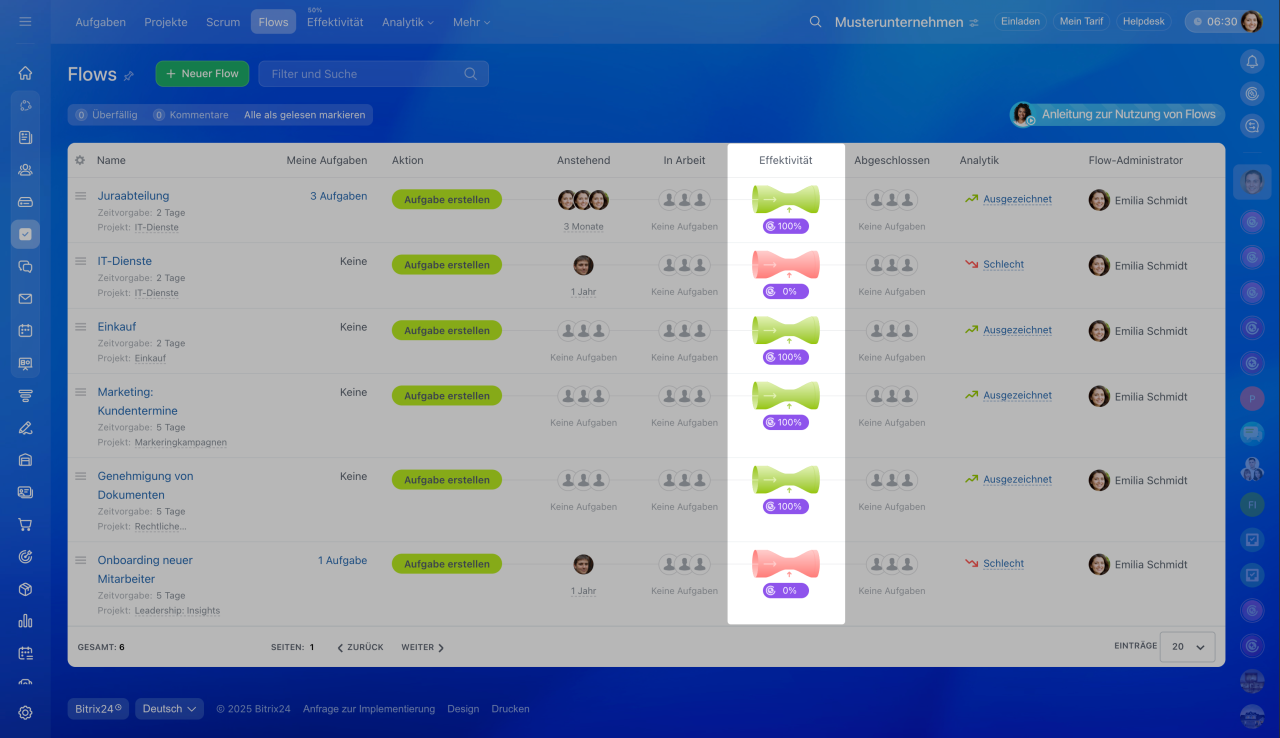 - Bitrix24 Flows werden jetzt vom KI-Assistenten CoPilot unterstützt. Er analysiert den Flow, identifiziert die Ursachen für Effizienzverluste und erstellt Empfehlungen zur Optimierung Ihrer Arbeitsprozesse.