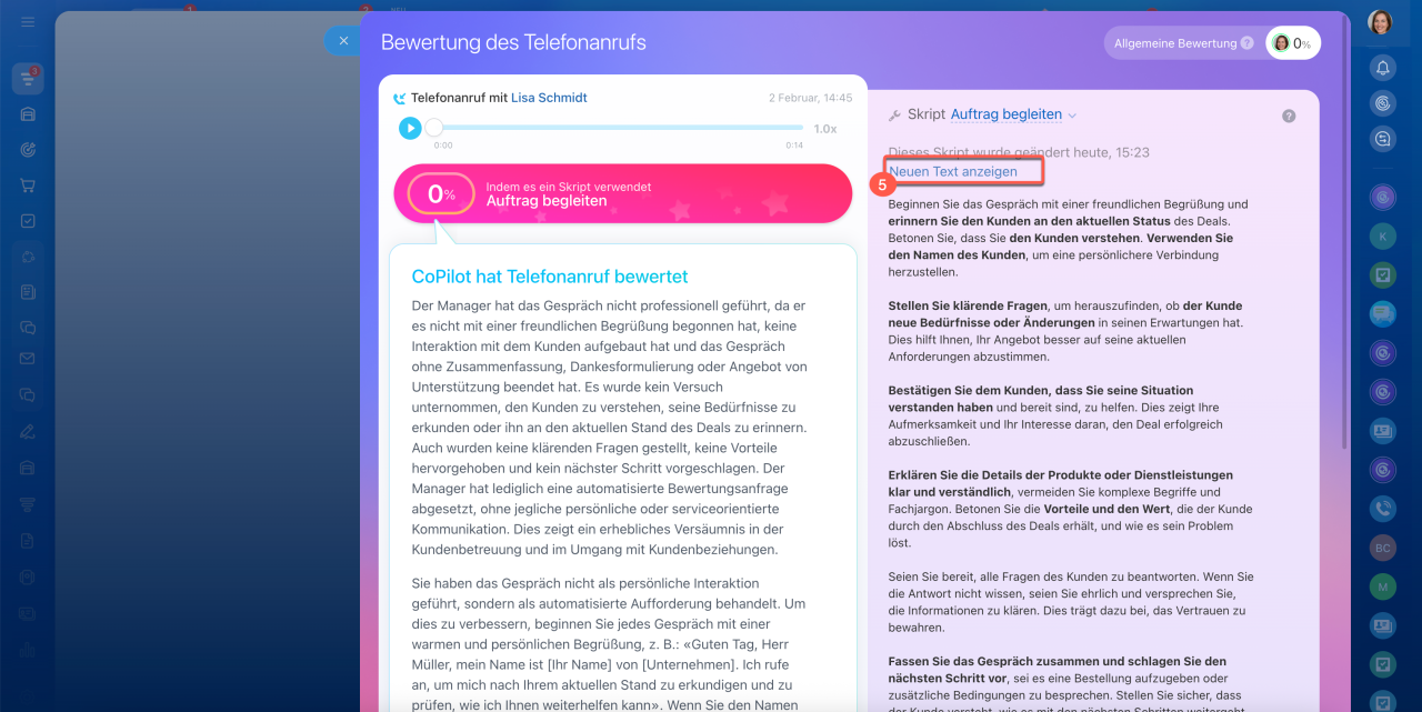 CoPilot analysiert das Gespräch daraufhin erneut und berechnet die Bewertung neu.