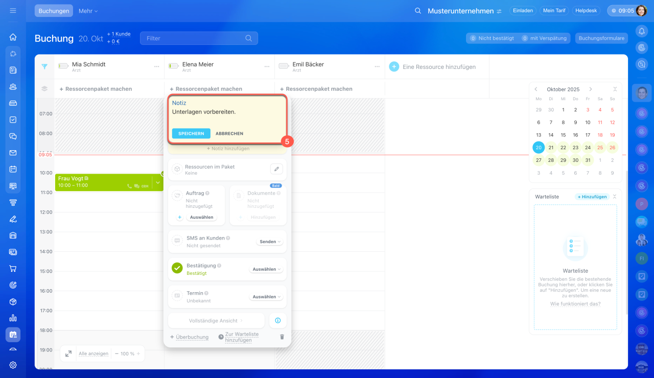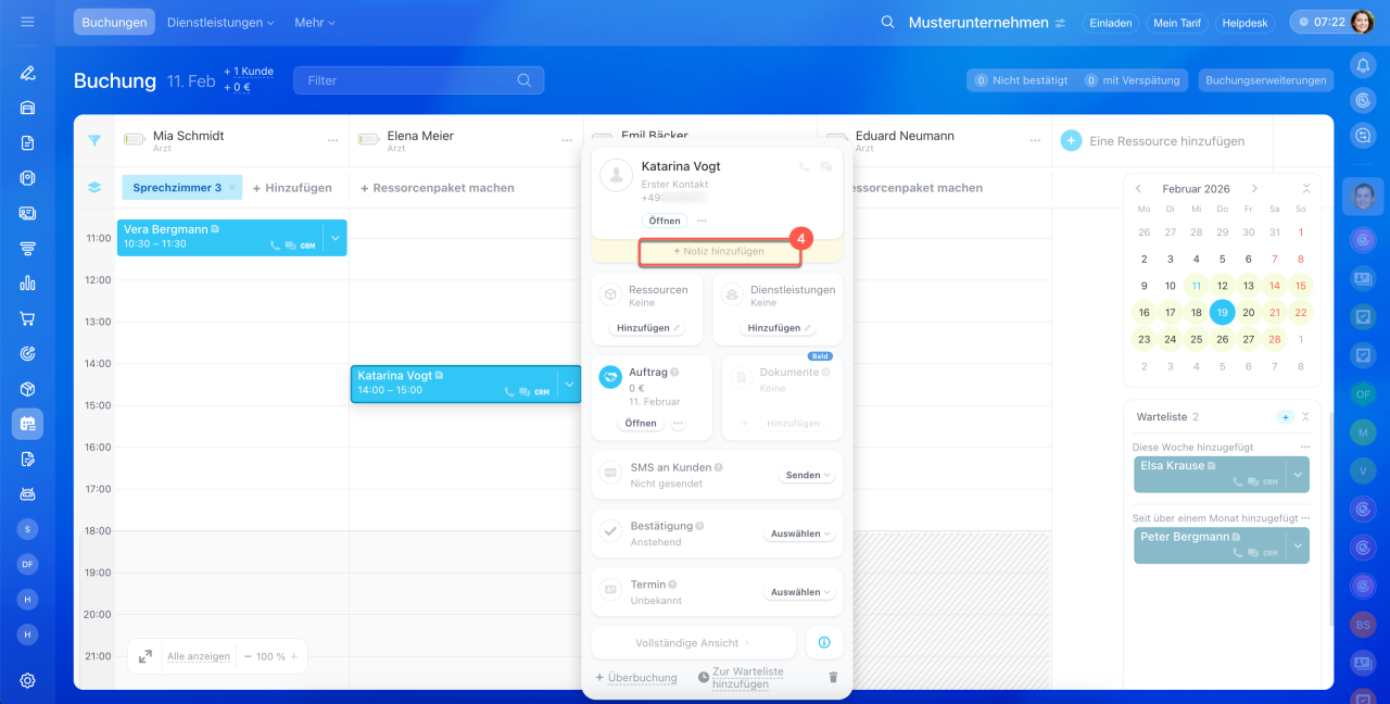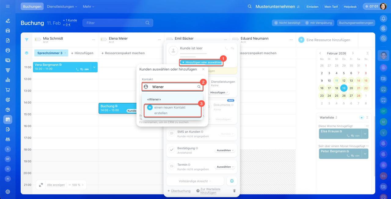 - Alle Mitarbeiter können Buchungen für die Kunden erstellen. Öffnen Sie dafür den Bereich Buchung.