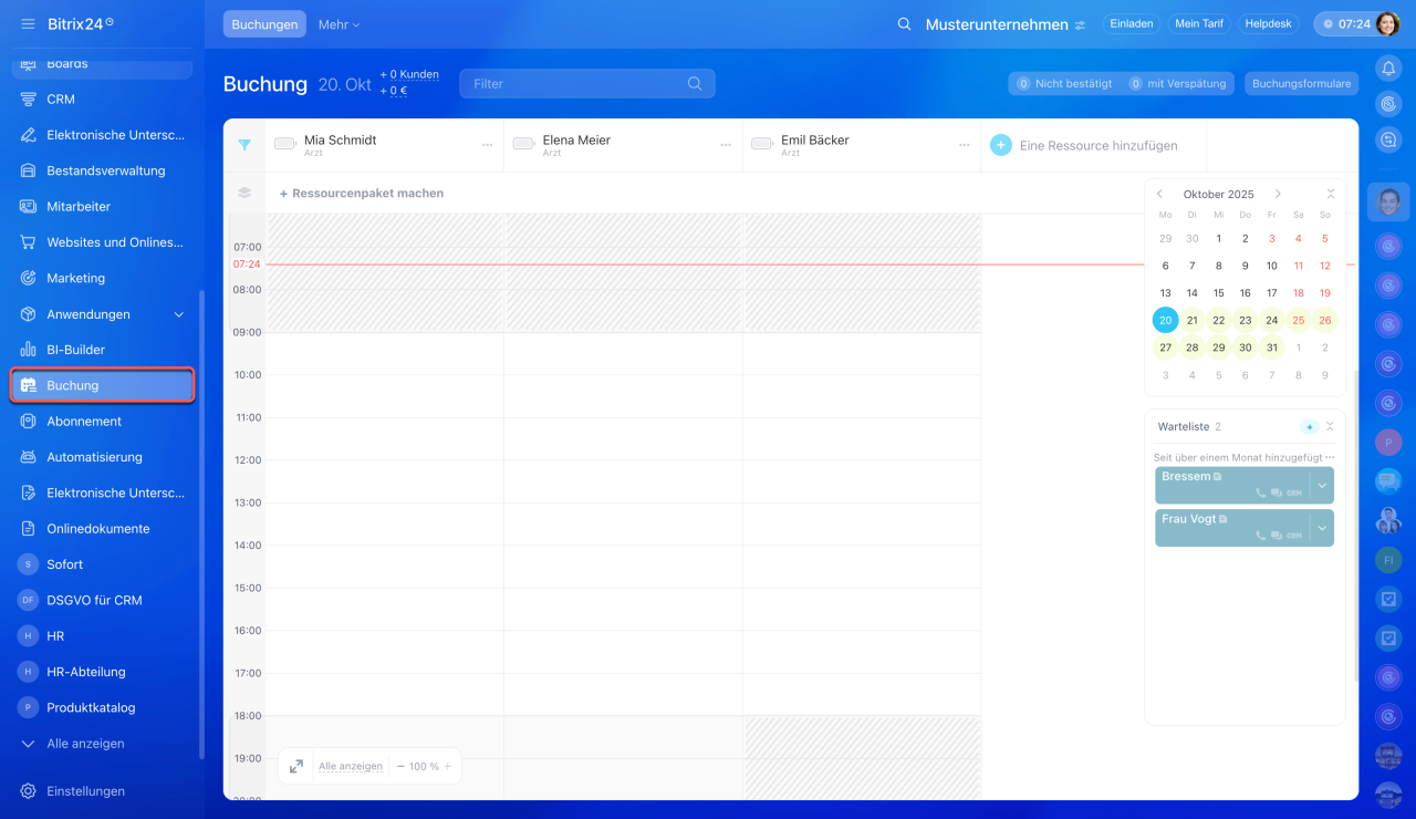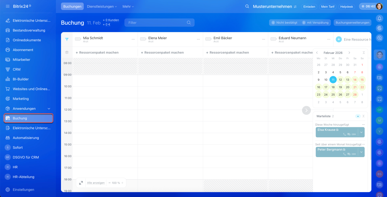 Buchung ist das neue Bitrix24-Tool zur Online-Terminvereinbarung sowie zur Reservierung von Geräten und Ausrüstung.
