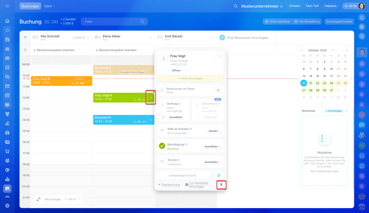 Buchung verschieben oder löschen