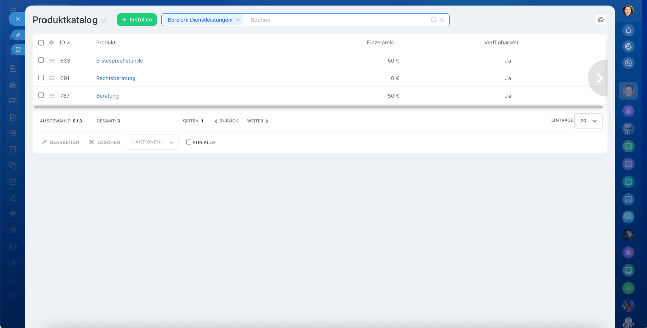 Die Liste aller Dienstleistungen finden Sie im Bereich Dienstleistungen > Alle Dienstleistungen.