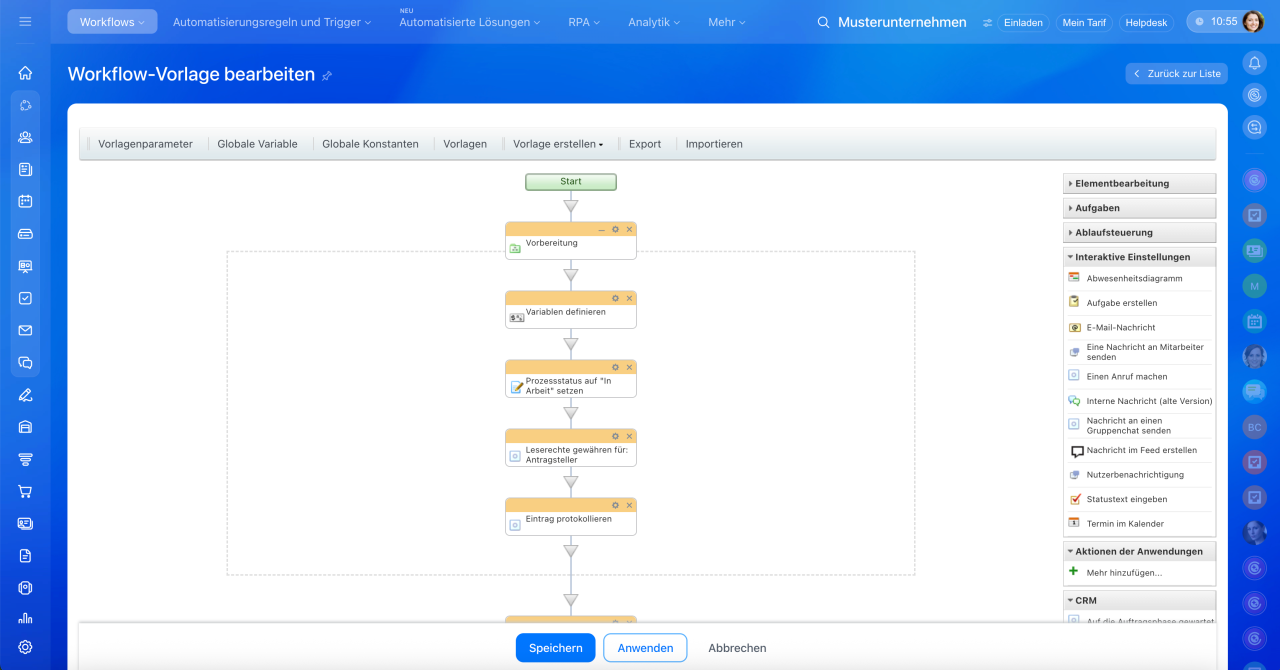 - Workflows sind ein Tool zur Automatisierung verschiedener Unternehmensaufgaben wie Urlaubsanträge, Dokumentengenehmigungen und Lead-Verarbeitung und andere.