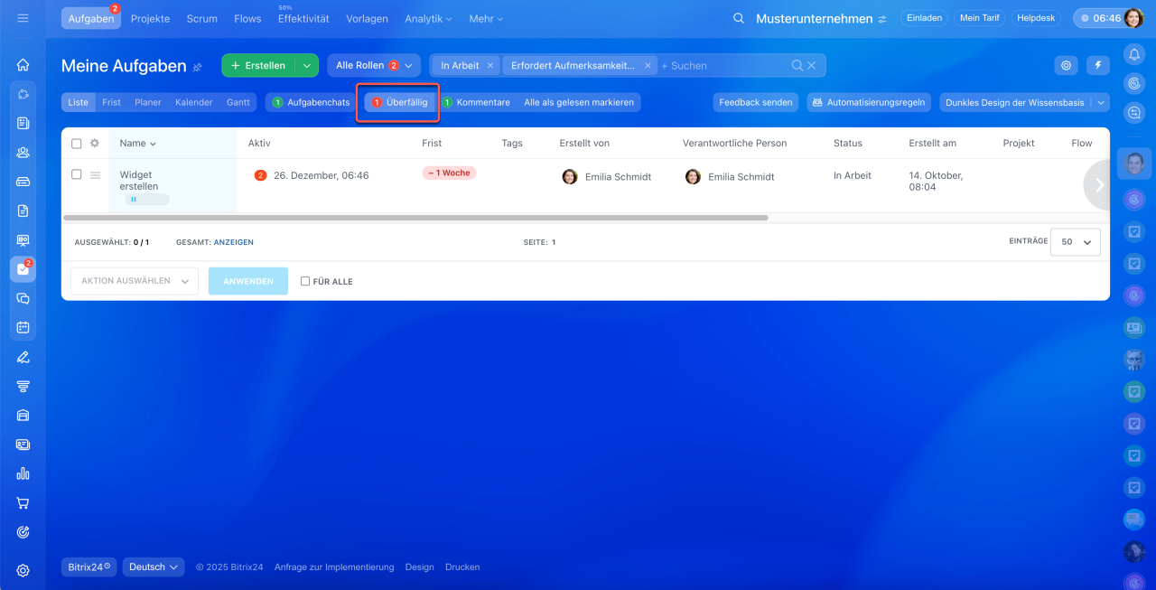 Wenn Sie jetzt eine Aufgabe in Outlook erstellen, wird sie auch in Bitrix24 angezeigt und umgekehrt.