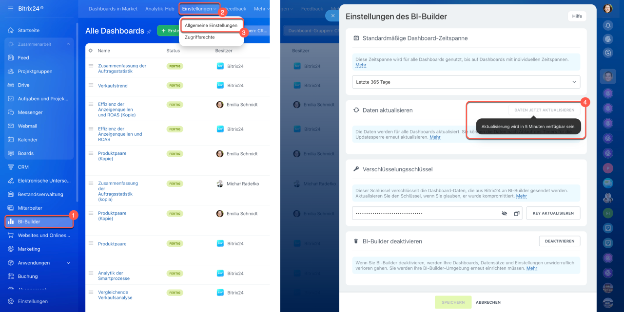 BI-Builder: Daten im Dashboard aktualisieren