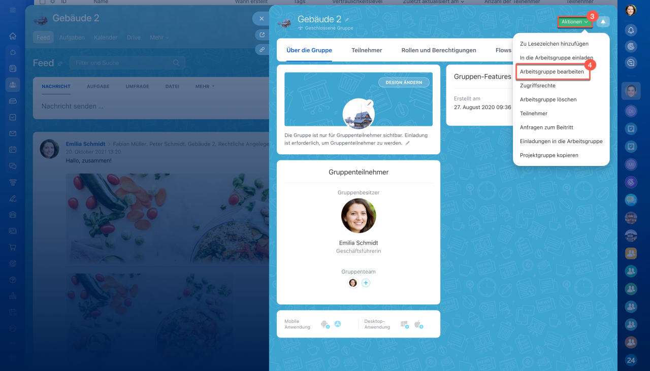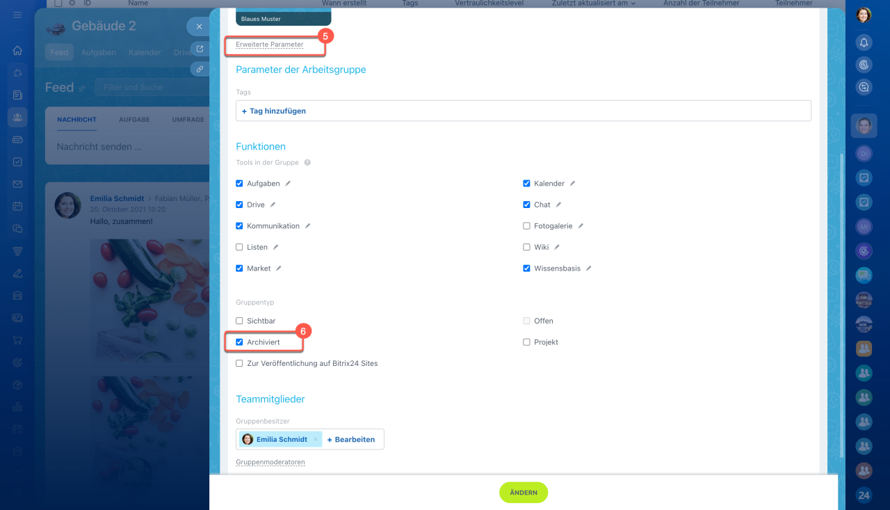 Wenn das Projekt abgeschlossen ist oder die Gruppe nicht mehr benötigt wird, können Sie diese archivieren, um die Daten nicht zu verlieren.