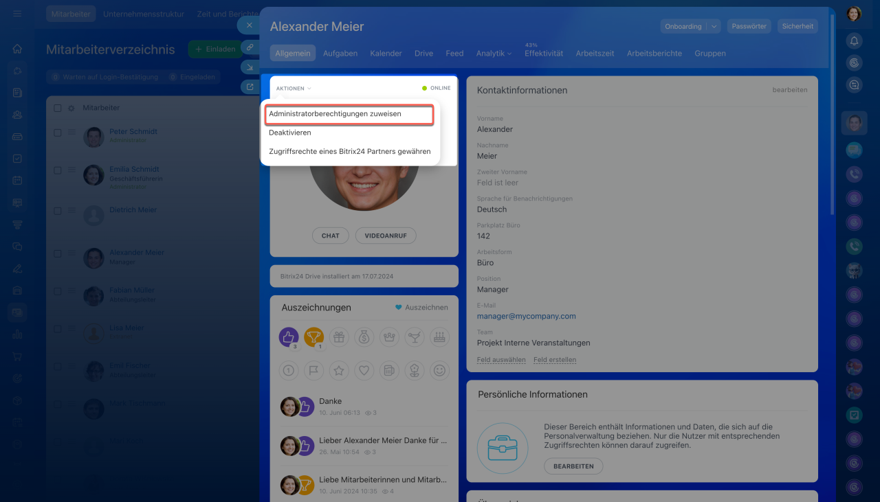Administratoren des Accounts in Bitrix24