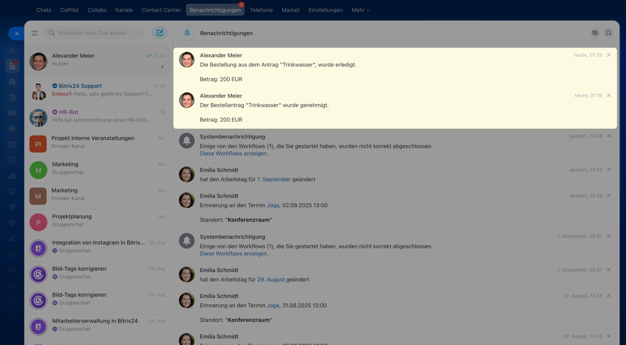 - Sie erhalten Benachrichtigungen über den Status Ihrer Anfrage direkt im Feed.