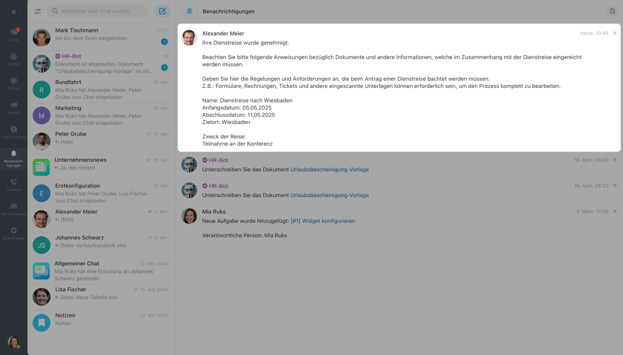- Verwalten Sie Ihre Dienstreisen direkt über Bitrix24.