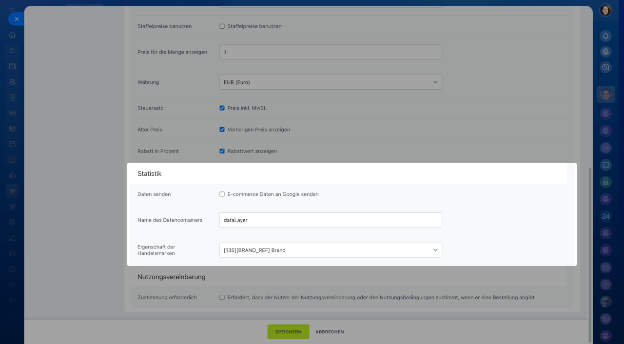 Daten senden: Aktivieren Sie diese Option, um E-Commerce-Daten an Google zu übermitteln.
