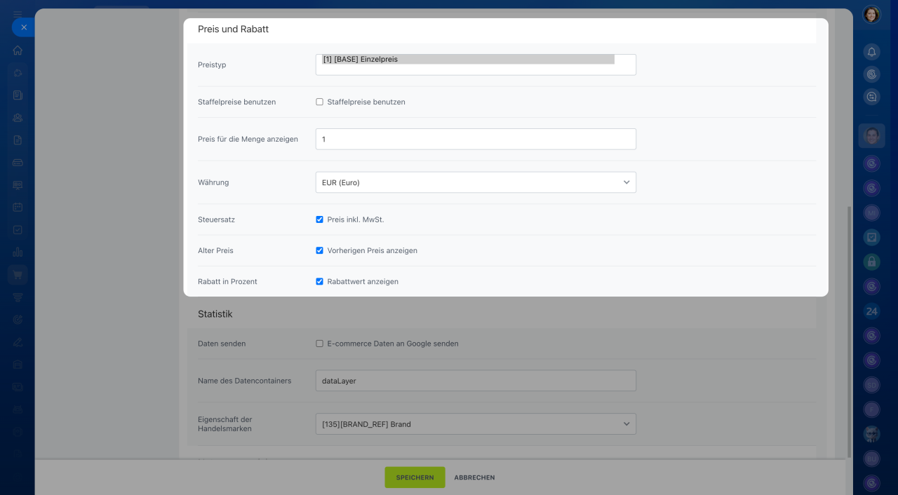 Alter Preis: Aktivieren Sie diese Option, um den vorherigen Preis anzuzeigen.