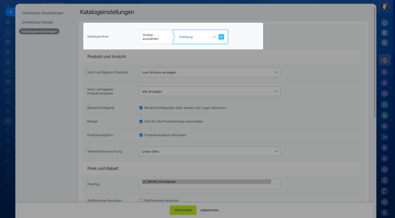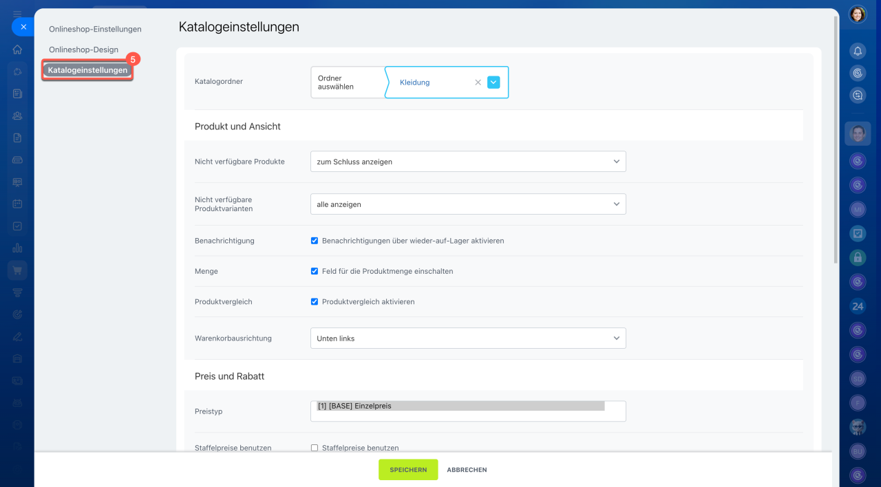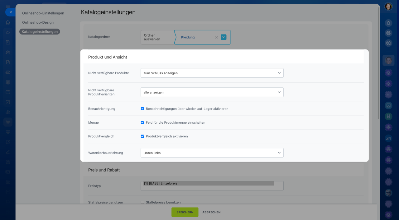Rabatt in Prozent: Aktivieren Sie diese Option, um den Rabattwert im Katalog anzuzeigen.