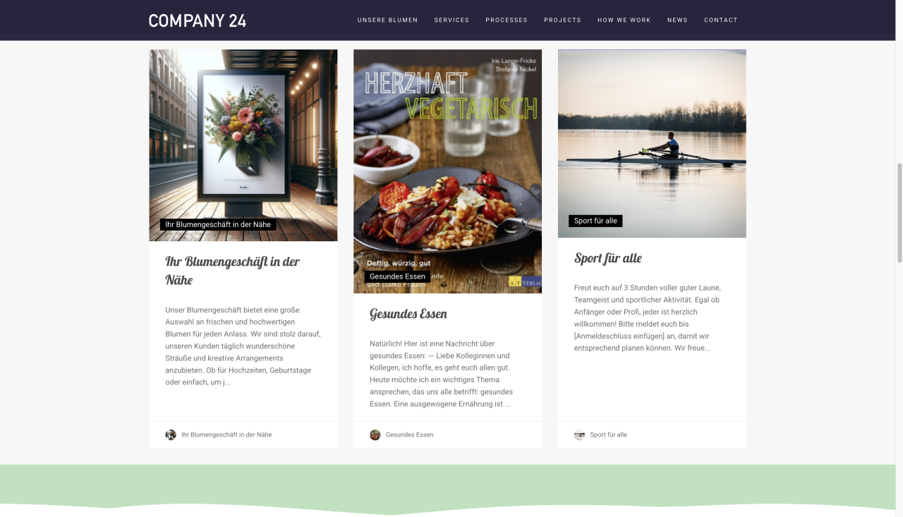 - Der Newsfeed auf der Website hilft, wichtige Ereignisse im Unternehmen sowie nützliche Inhalte zu teilen. Dies weckt das Interesse der Zielgruppe und zieht neue Besucher über Suchmaschinen an.