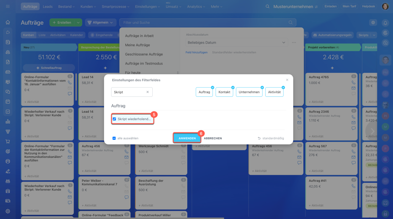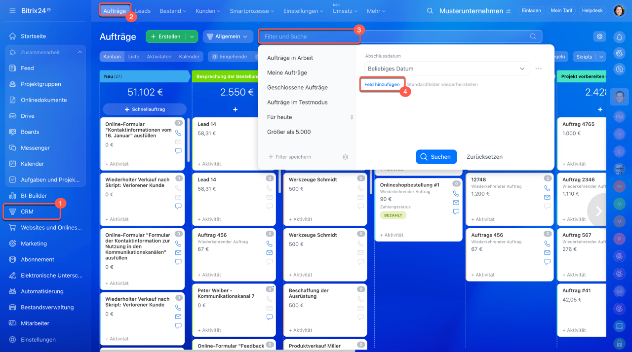 1–2. Öffnen Sie den Bereich CRM > Aufträge.