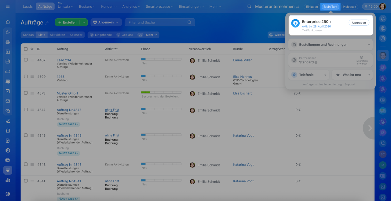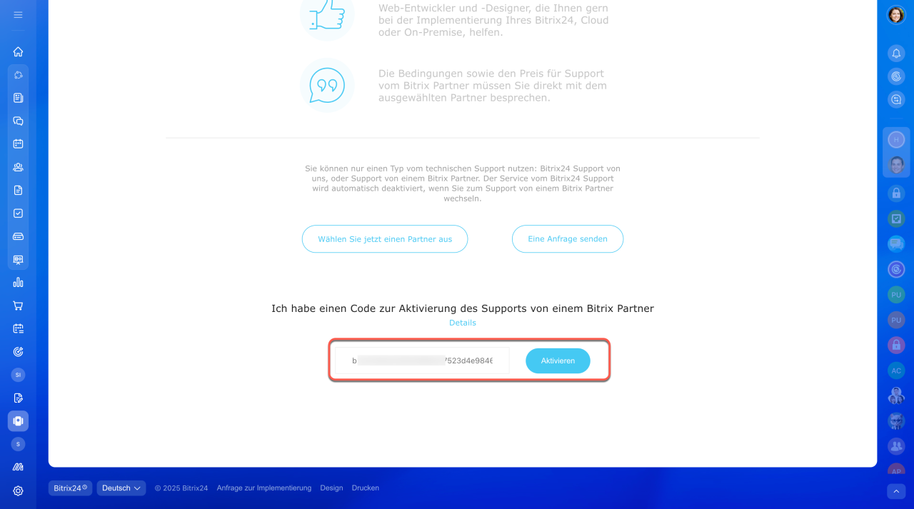 Danach wird der Bitrix24 Support wieder automatisch aktiviert.